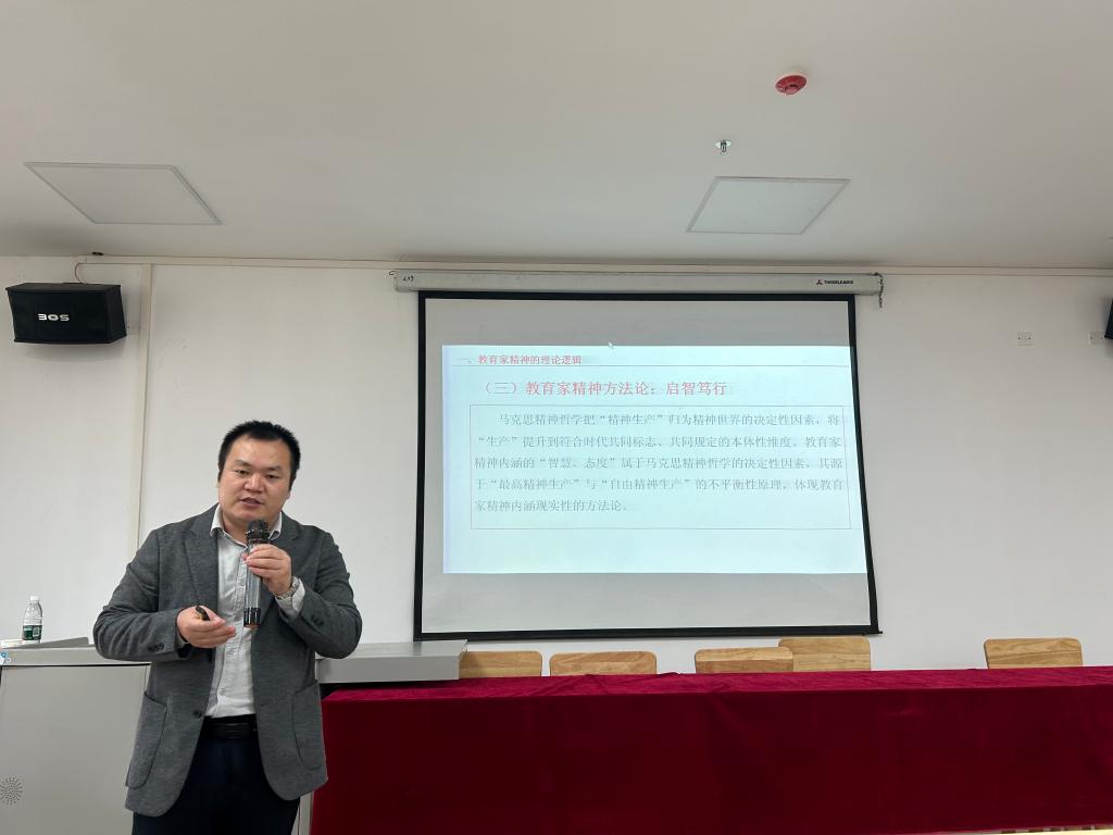 谢博士的宣讲,深入浅出、旁征博引,不仅为我们阐述了教育家精神的理论逻辑、时代创新,还为我们指明了弘扬教育家精神的路径与方向。让我们深刻感受到了教育家们“心有大我、至诚报国”的理想信念,“言为士则、行为世范”的道德情操,“启智润心、因材施教”的育人智慧,“勤学笃行、求是创新”的躬耕态度,“乐教爱生、甘于奉献”的仁爱之心,以及“胸怀天下、以文化人”的弘道追求。这些精神品质,正是新时代教育事业的宝贵财富,也是我们每一位教育工作者应该不断追求和践行的目标。