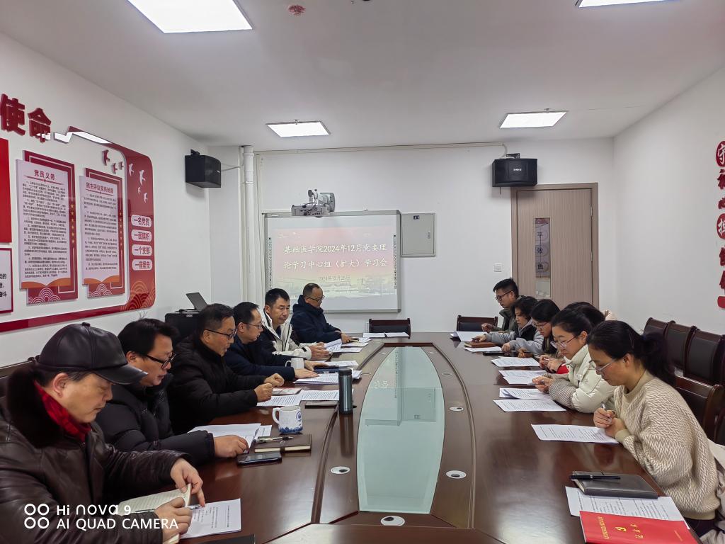 12月25日,基础医学院党委在基础医学院638会议室召开12月份党委理论学习中心组(扩大)学习会,党委班子成员、支部书记、科室负责人参加会议,民主党派教师代表李兴暖、药学与生命科学学院组织员石红璆列席会议。会议由院党委书记张辉主持。