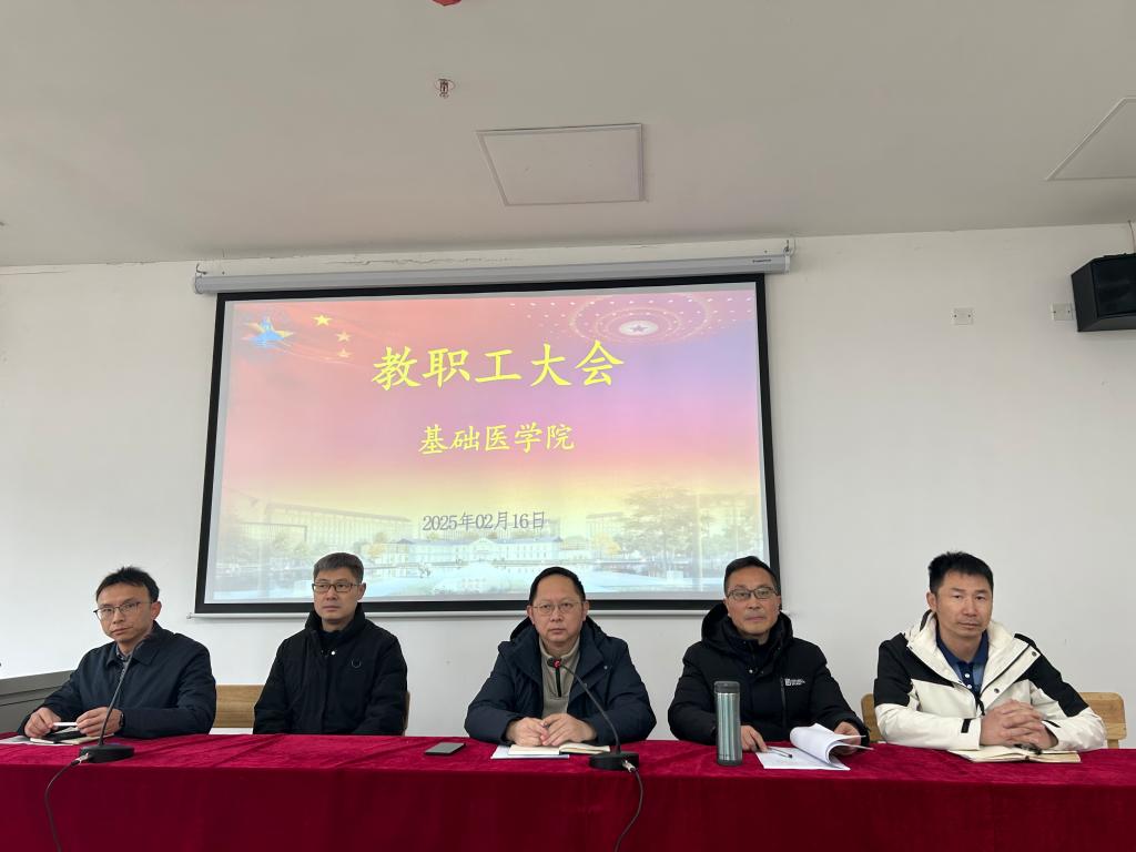 2月16日上午,基础医学院在办公楼635室召开新学期开学职工大会。全体教职工齐聚一堂,共同谋划新学期发展蓝图,为学院新一年的工作指明方向。本次会议由学院院长许晓源主持。