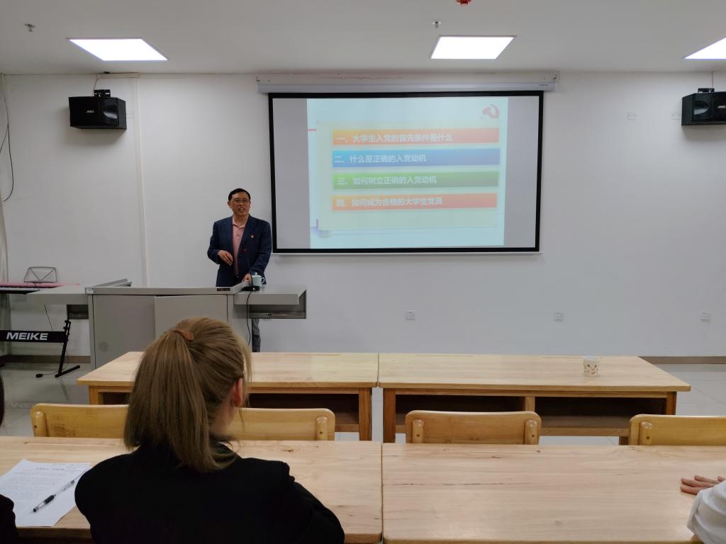 开班仪式结束后,刘频健和吴彭年分别以《弘扬五四精神,做新时代有为青年》和《端正入党思想,争取早日入党》为题讲授党课。刘频健回顾了五四运动的历史背景,深入解读了五四精神的内涵,阐述了五四运动推动马克思主义传播、促进中国共产党诞生的历史意义。他结合新时代发展,从创新报国、生态文明建设、文化自信、命运与共、底线思维等方面,探讨了继承和发扬五四精神的具体路径。吴彭年在党课中强调,端正入党思想动机是入党条件的首要前提,并剖析了理想型等正确入党动机与面子、投机等不正确动机的本质区别。他指出,树立正确入党动机需通过加强理论学习、投身实践锻炼、注重党性修养和主动向党组织靠拢来实现。成为合格大学生党员,要在政治素质、学习成绩、工作表现上全面发展,既要发挥先锋模范作用、关心国家大事,也要保持学业优秀、积极投身服务奉献,以实际行动践行党员标准。