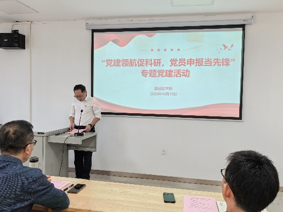 为了推动学院党建与科研工作深度融合、同频共振,将党的政治领导力转化为推动科研创新的强大动力,激发党员教师科研创新活力,全面提升学院科研水平与核心竞争力,10月15日下午,基础医学院党委在635会议室召开全体党员大会,隆重启动“党建领航促科研,党员申报争先锋”专题党建活动。会议由学院党委副书记刘频健主持,全体教工党员参会,共同接受思想动员与行动部署。